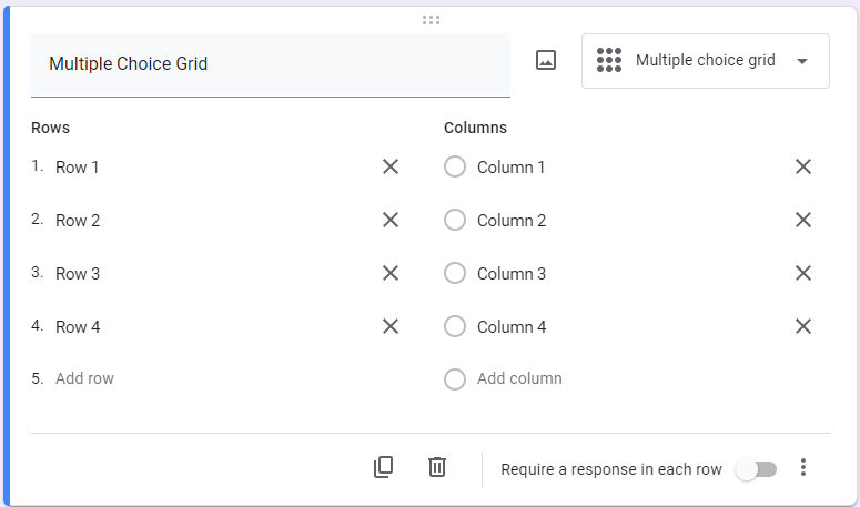 Multiple Choice Grid